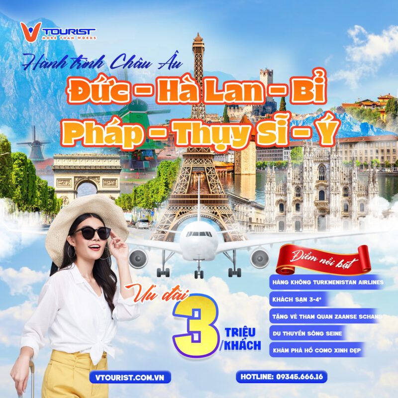 Tour Châu Âu 9N: Đức – Hà Lan – Bỉ – Pháp – Thụy Sĩ – Ý